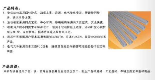 當(dāng)前位置:鋁型材擠壓機(jī)首頁 > 產(chǎn)品介紹 > 擠壓機(jī) > 1800T擠壓機(jī)系列
